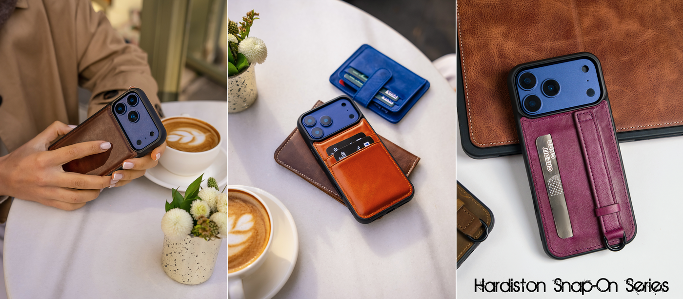 Elevate your device with our Premium Leather Phone Wallet Cases, designed for those who value style, functionality, and durability. Handcrafted from the finest materials, these cases offer a seamless blend of luxury and practicality. Featuring MagSafe compatibility for effortless charging and secure attachment, they ensure your phone stays protected while maintaining its sleek design. Choose from versatile options like the Snap-on Flex and Snap-on Harbour models, each tailored to provide maximum convenience and a perfect fit. With precision stitching and a refined finish, these cases are more than just accessories—they’re a statement of sophistication.