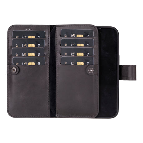 With MagSafe compatibility, a detachable and magnetic phone case, and a double-fold card holder, this model ensures convenience at every turn. Equipped with 9-12 card slots, a cash pocket, raised edges, and a fully enclosed design, the case provides full protection for your device and valuables. Wireless charging compatibility makes this case a seamless part of your daily routine.