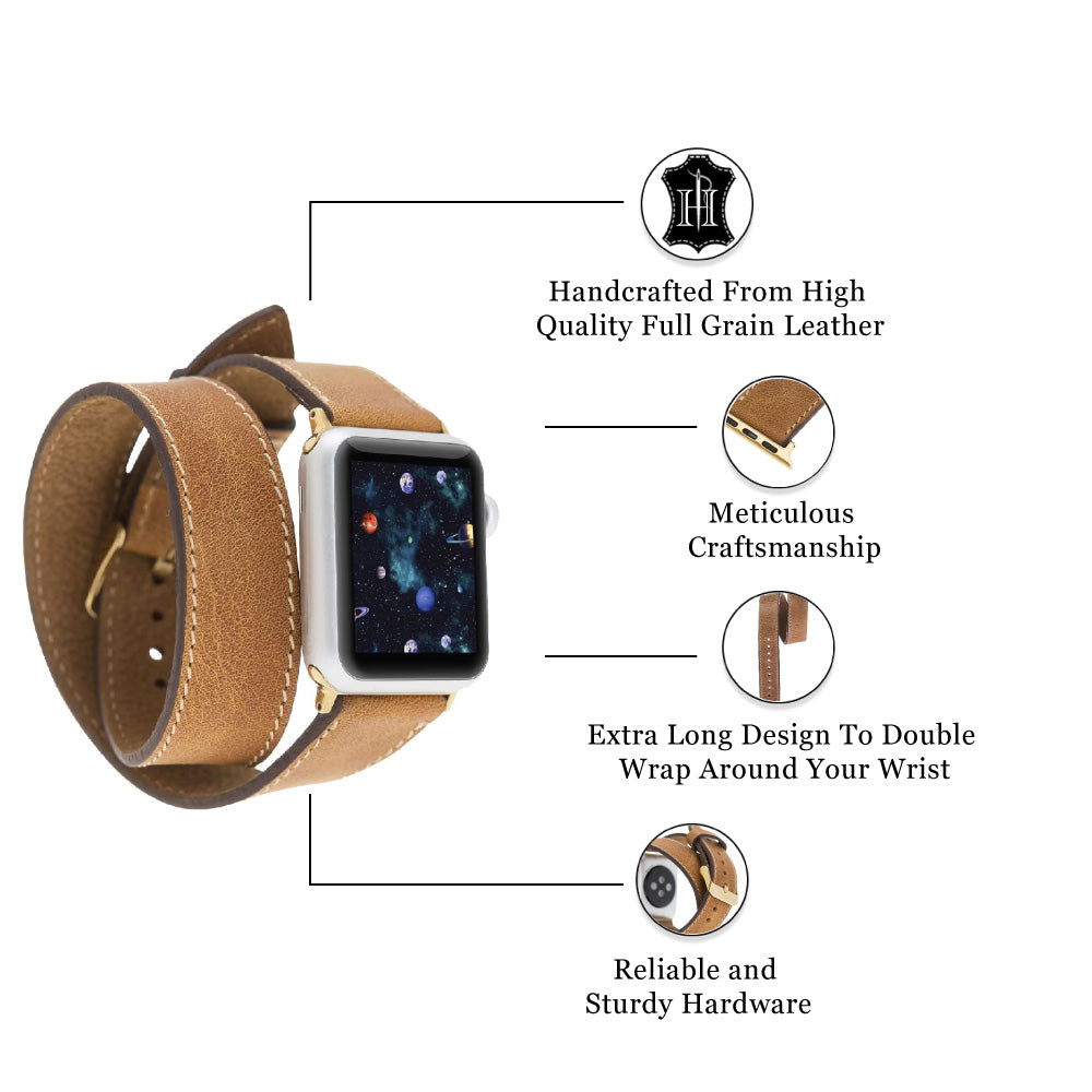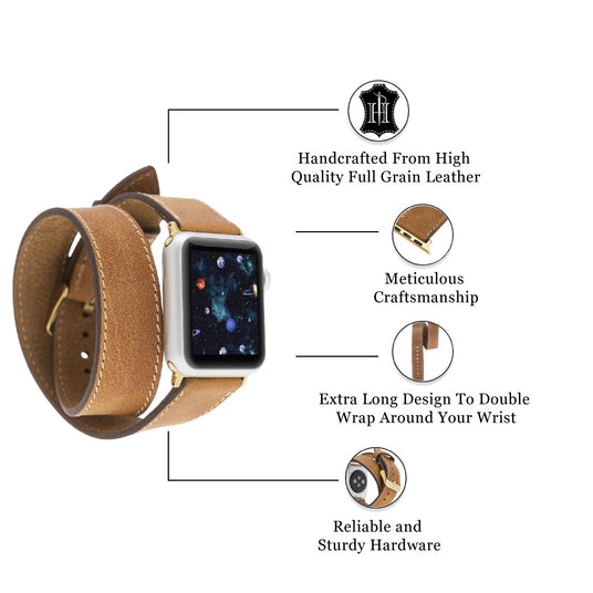 The long straps of the leather watch band wrap your wrist twice to create an attractive appearance to complement your outfit. The double tour Fitbit Watch band has strong linen stitches which also enhance the look of the leather watch band.