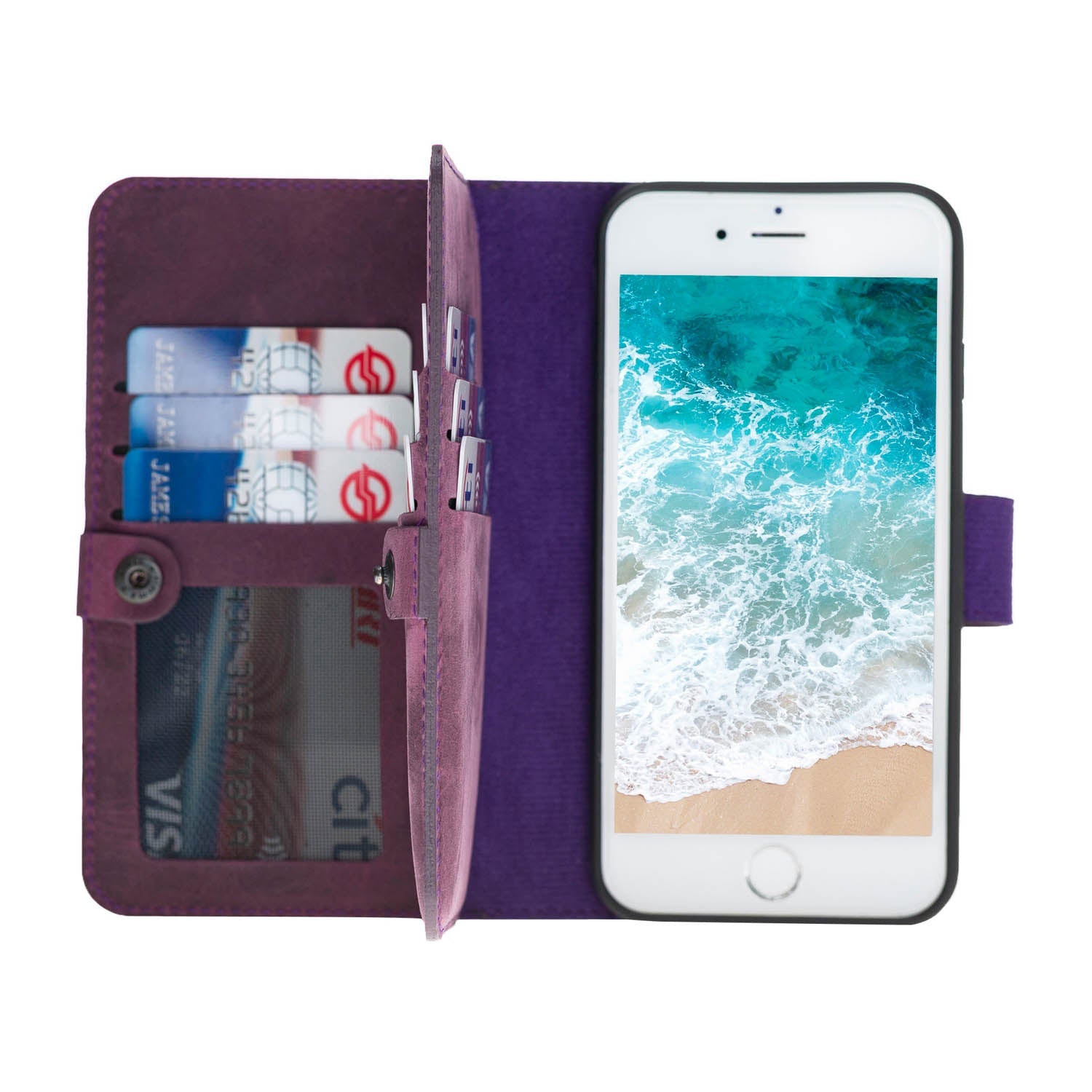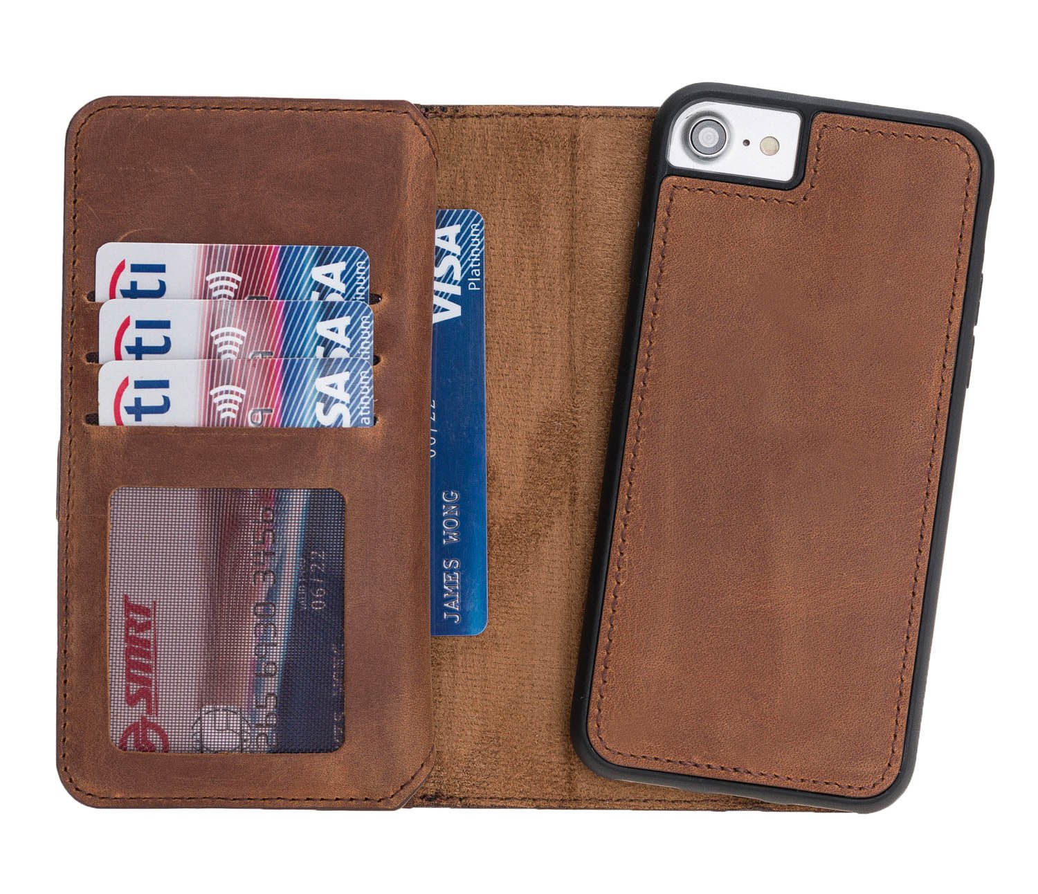 iPhone SE / iPhone 8 / iPhone 7 Dual Fold Magnetic Detachable Leather Wallet Case offers compact, versatile and exclusive design! Combine your wallet with your phone case. Meticulously handcrafted phone wallet case with premium leather. Keep your iPhone, cards and cash in one secure and easy to carry case.