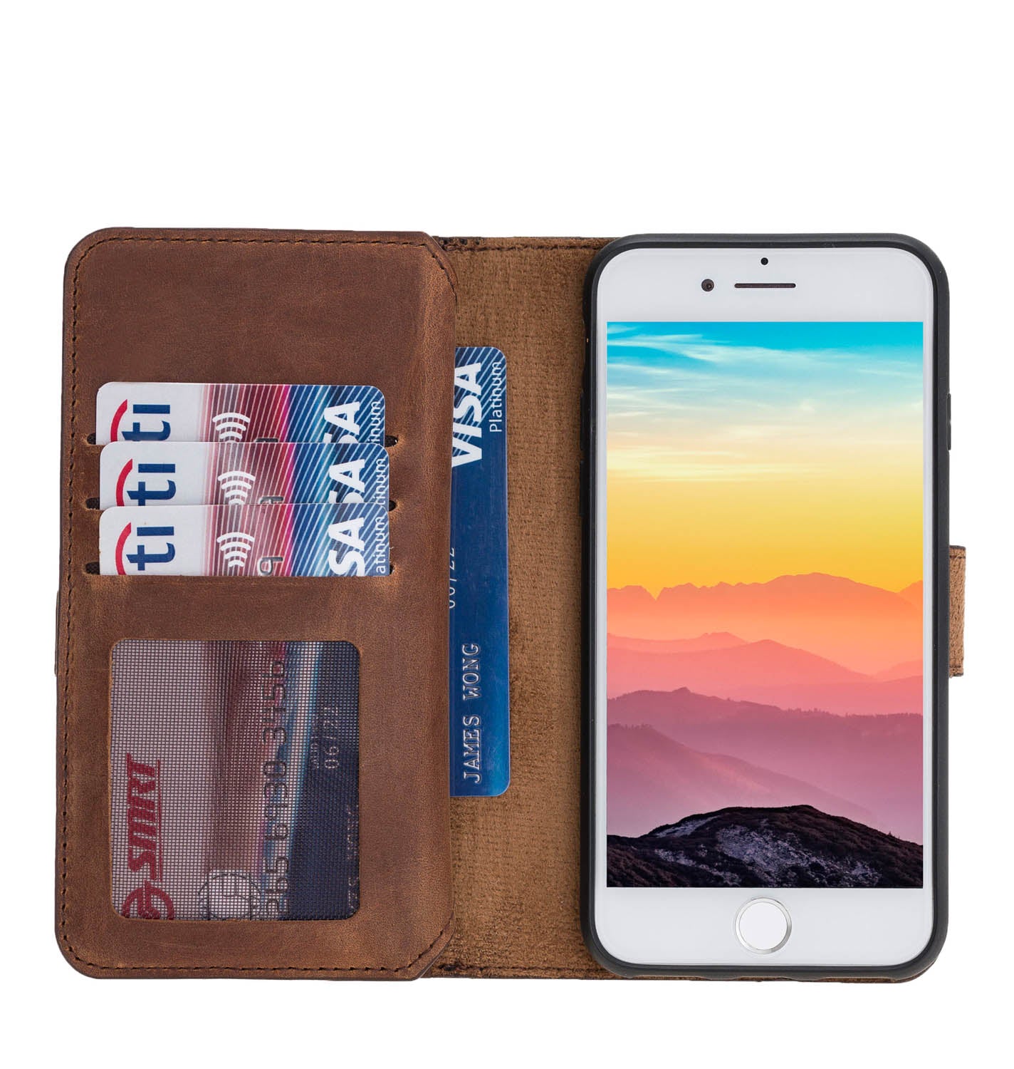iPhone SE / iPhone 8 / iPhone 7 Dual Fold Magnetic Detachable Leather Wallet Case offers compact, versatile and exclusive design! Combine your wallet with your phone case. Meticulously handcrafted phone wallet case with premium leather. Keep your iPhone, cards and cash in one secure and easy to carry case.