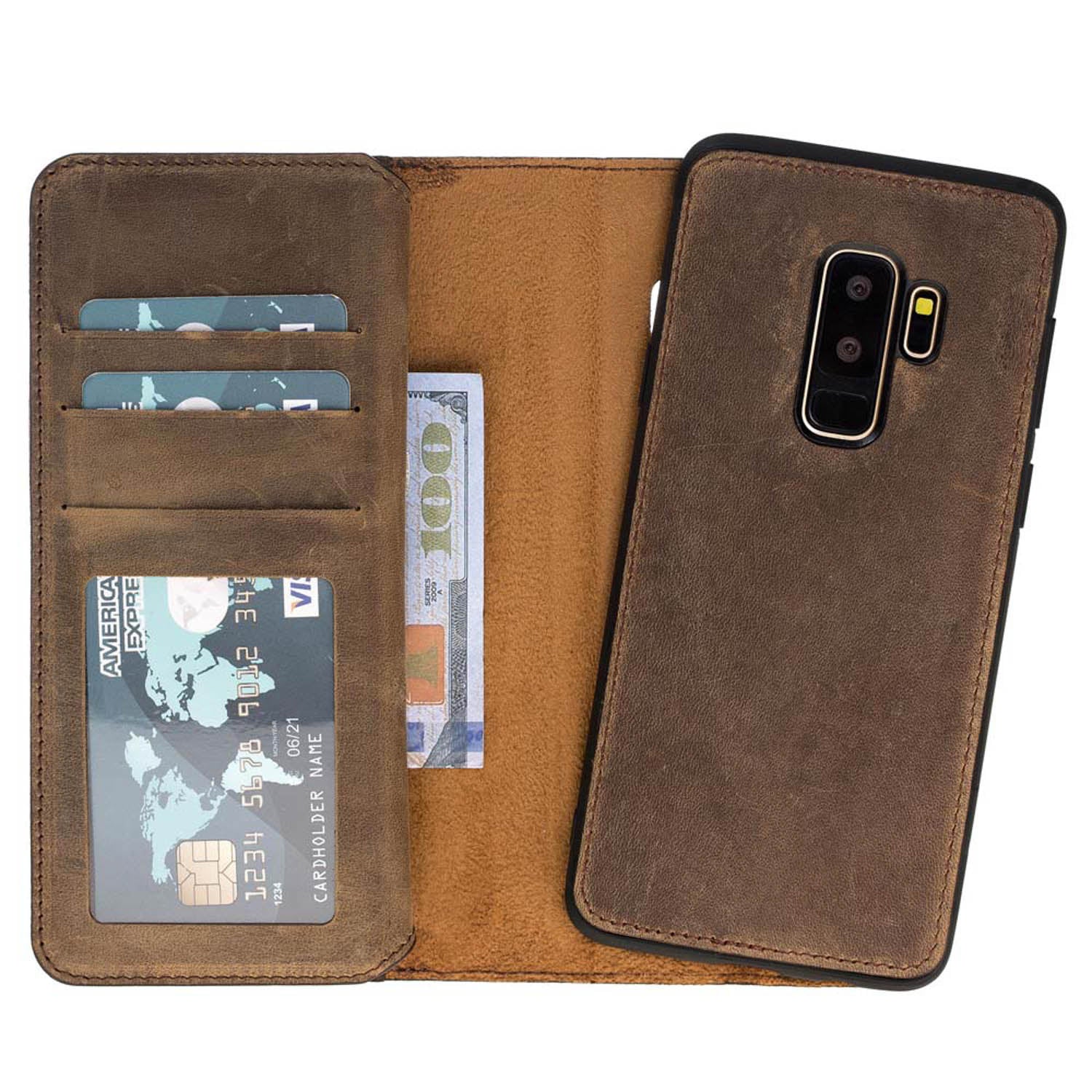 Samsung Galaxy S9 Plus Dual Fold Magnetic Detachable Leather Wallet Case
