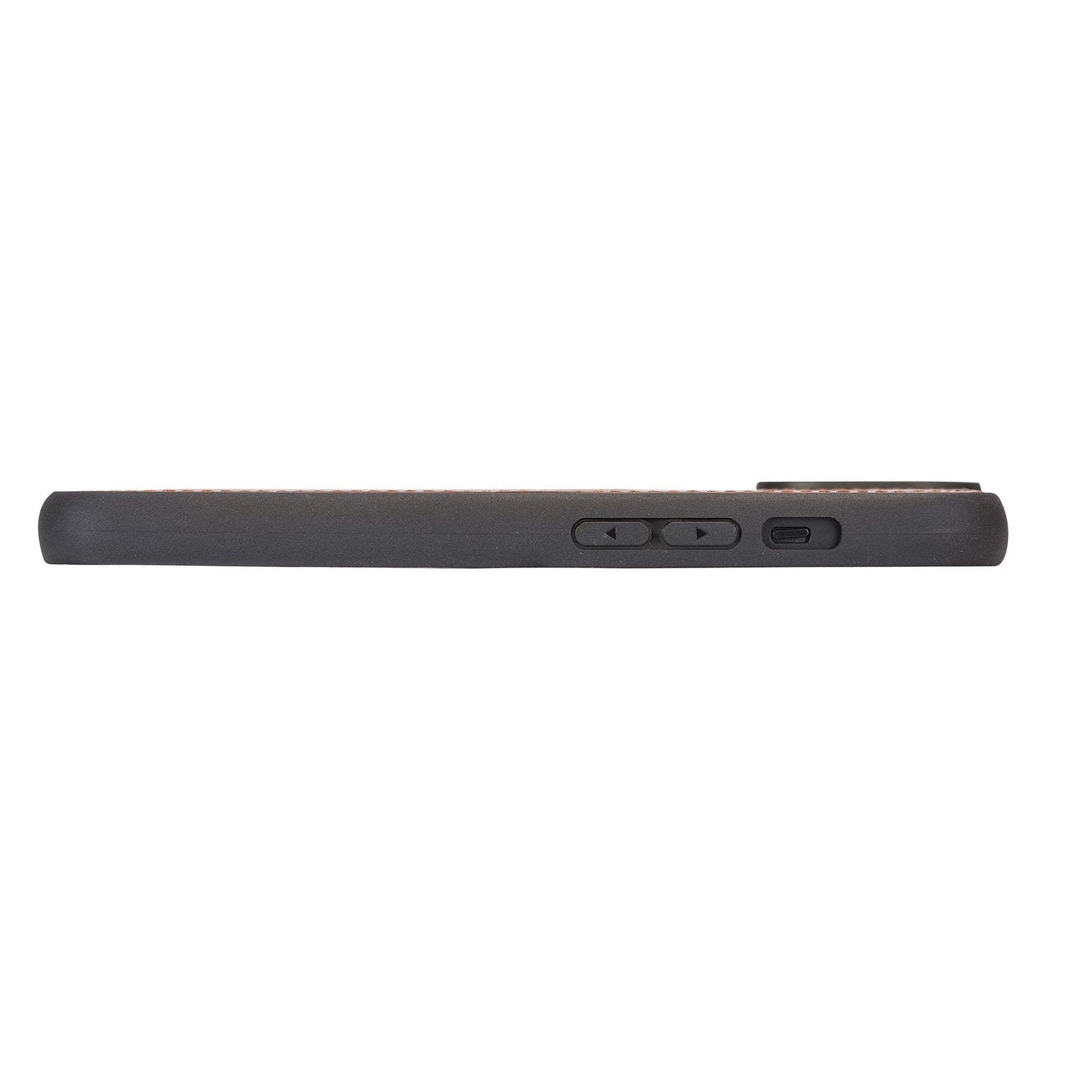 The iPhone 14 Leather Snap-on Flex Flat Case features durable TPE side bumpers to shield your Apple phone from drops and bumps. Moreover, the side buttons are also covered with the side bumper to enable comfy reach. This part is tightly sewn to the leather back with strong stitches to ensure sturdy craftsmanship.