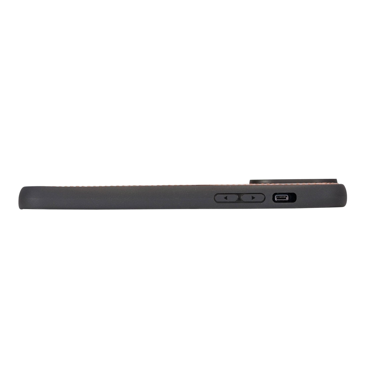 iPhone 14 Max Leather Snap-on Flex Flat phone case features durable TPE side bumpers to shield your Apple phone from drops and bumps. Moreover, the side buttons are also covered with the side bumper to enable comfy reach. This part is tightly sewn to the leather back with strong stitches to ensure sturdy craftsmanship.