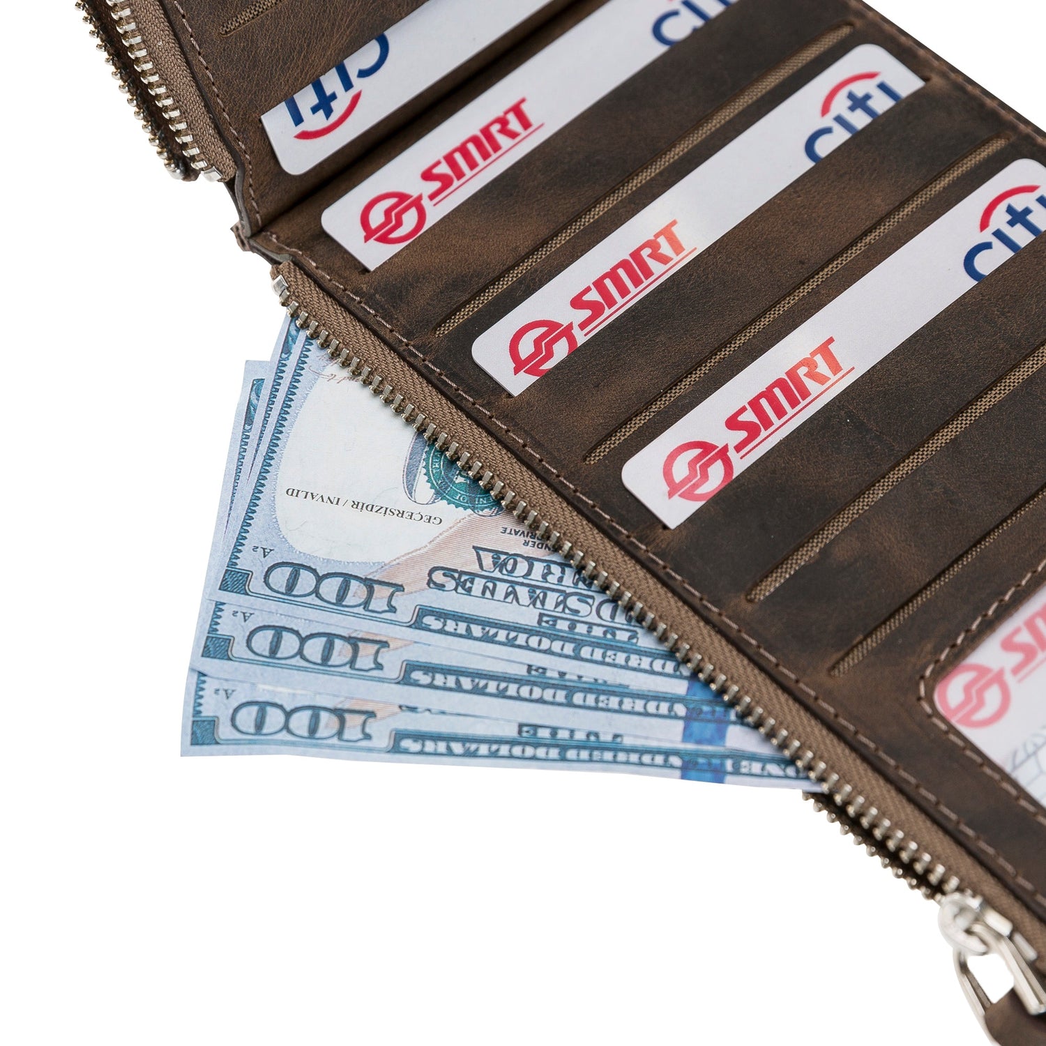 - Wide and Zip Closure Cash Pocket