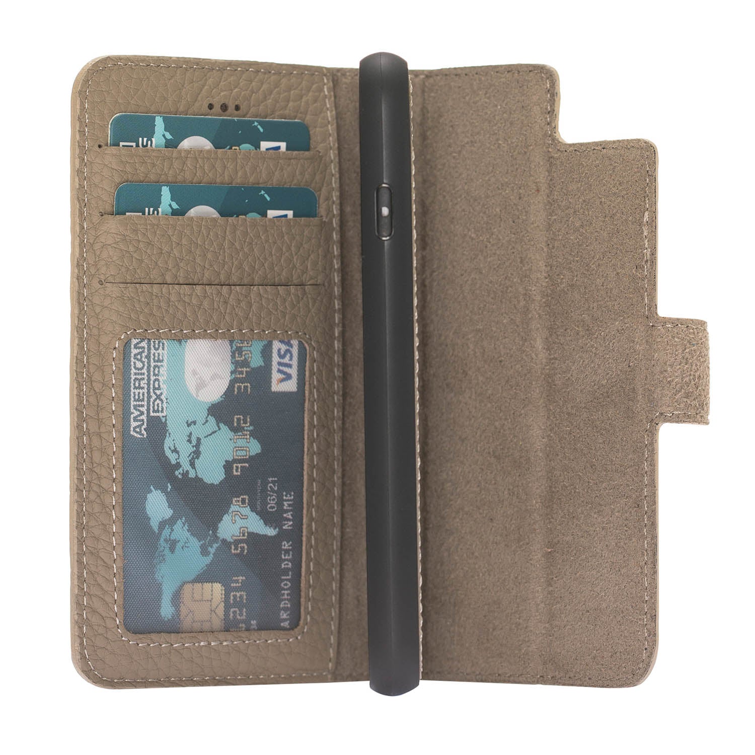 Stylish, elegant and durable! High-quality handmade genuine leather phone 2 in 1 case. Use it as protective phone case or as wallet case with card holder.