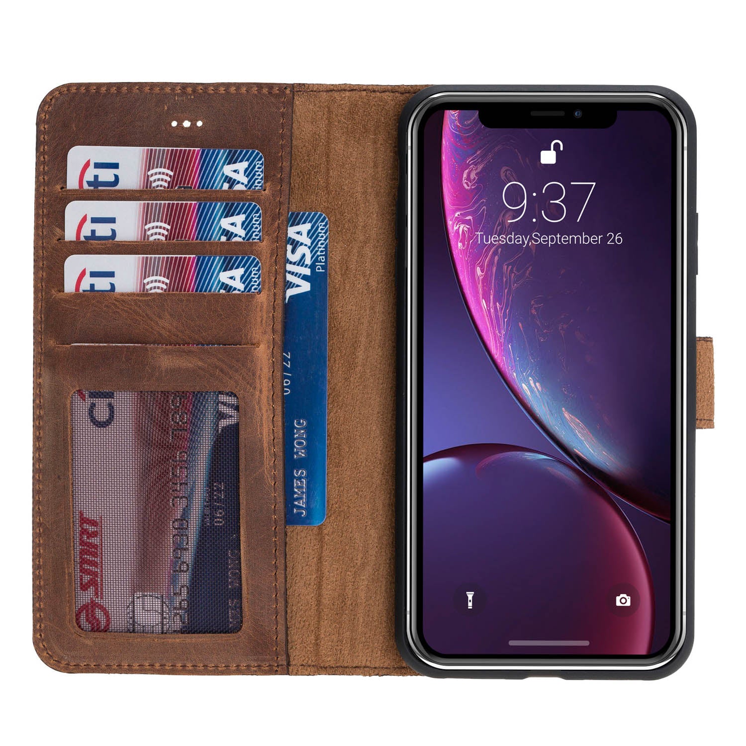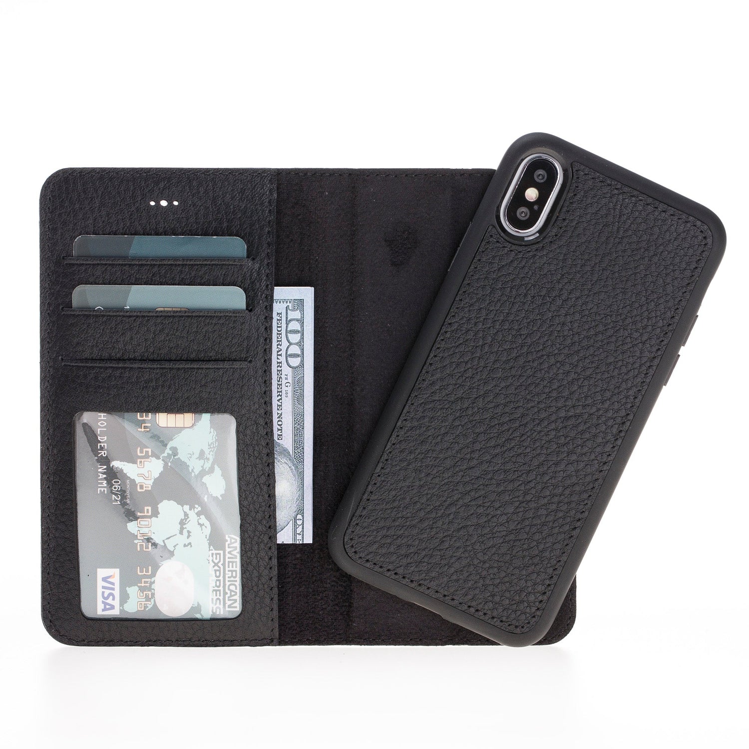 Stylish, elegant and durable! iPhone X / XS Leather Wallet Case is a high-quality handmade genuine leather phone 2 in 1 case. Use it as protective phone case or as wallet case with card holder.