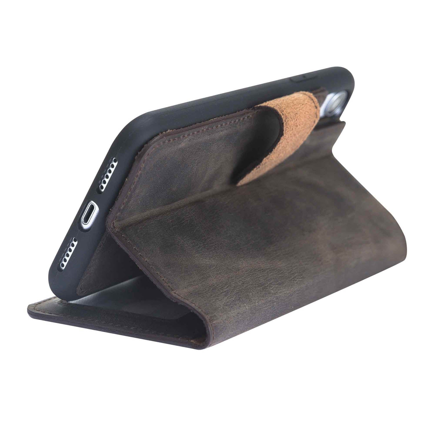 Stylish, elegant, and durable! The iPhone XR Leather Wallet Case is a high-quality handmade genuine leather 2-in-1 case. Use it as a protective phone case or as a wallet case with a card holder.