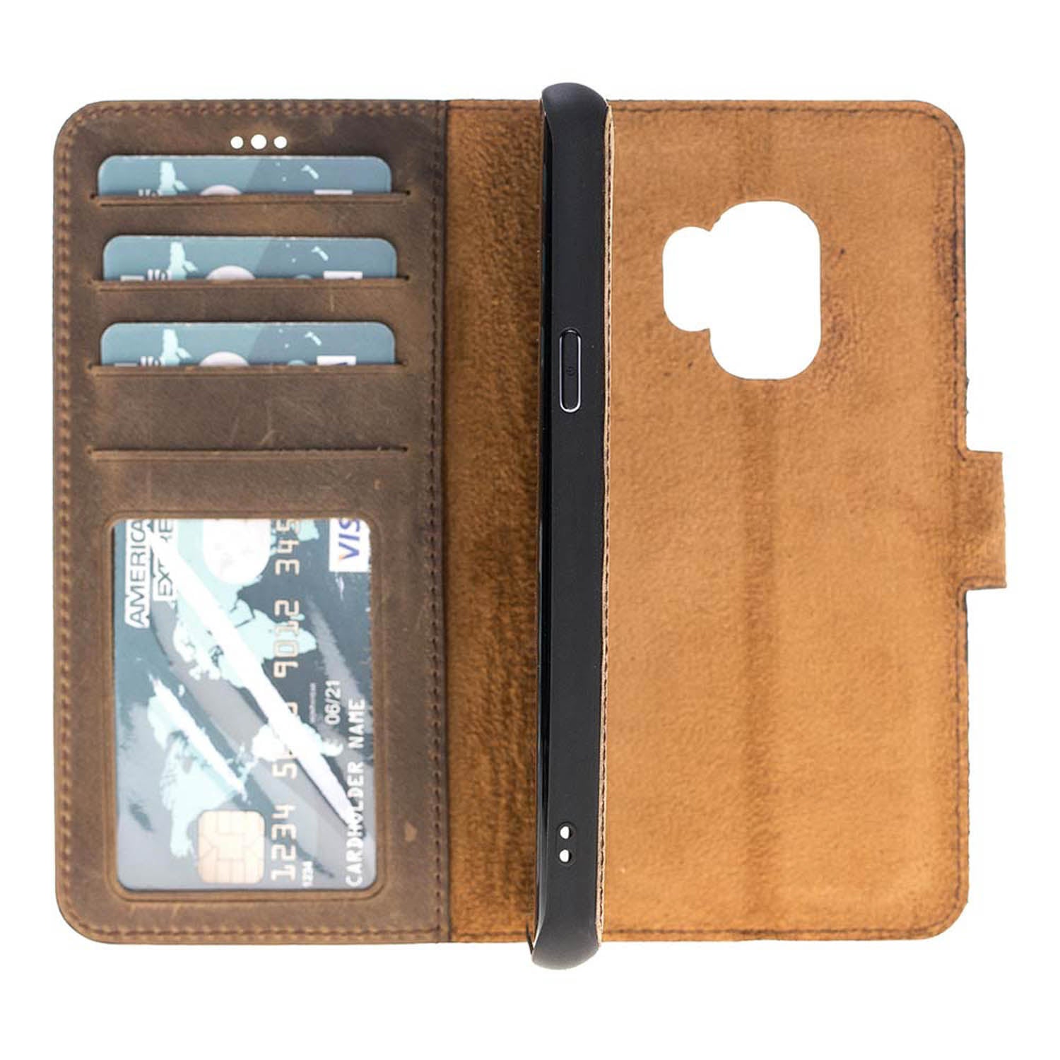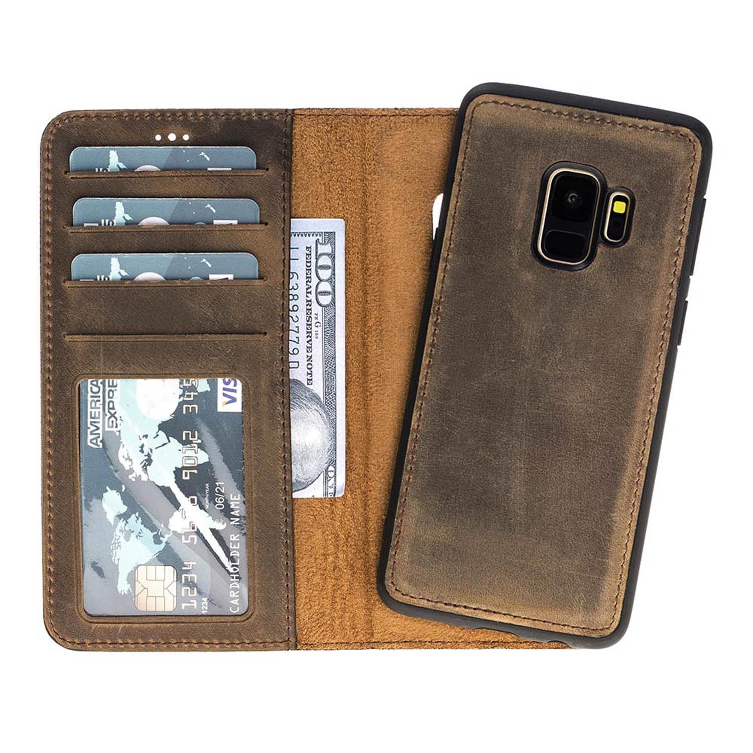 Smart 2-1 design allows you to use detachable Snap-On case independently. Wallet case provides easily accessible 3 card slots, 1 window slot for photo ID, and 1 posterior cash pocket. Strong magnetic detachable design of this Samsung Galaxy S9 leather case offers you more flexibility.