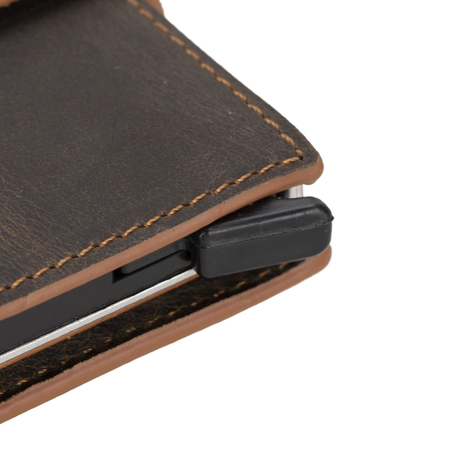 Premium RFID Blocking Leather Pop-Up AirTag Card Holder and Wallet - Brown is backordered and will ship as soon as it is back in stock.