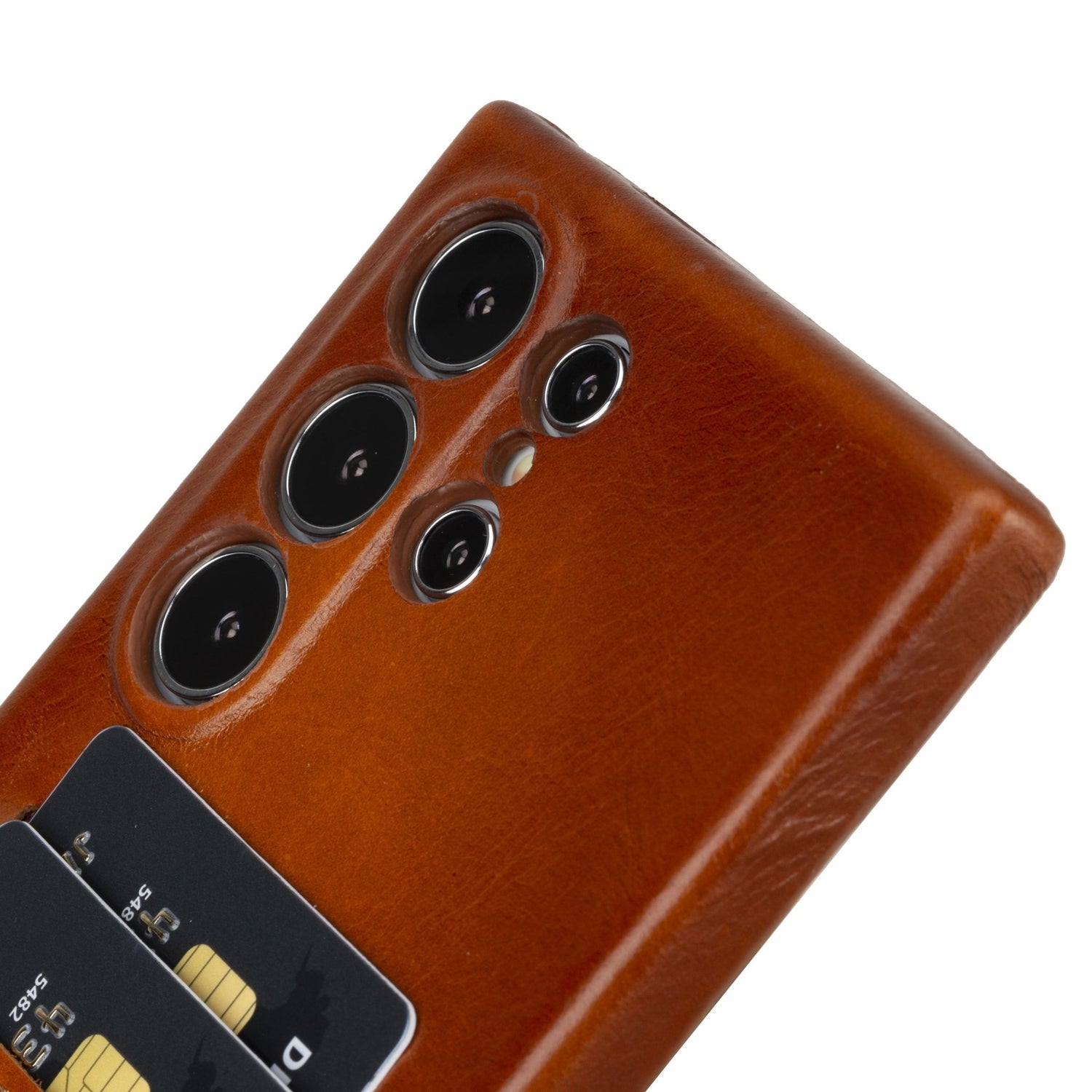 Samsung Galaxy S24 Ultra Snap-on Full Cover Leather Case with Credit Card Slots - Russet is backordered and will ship as soon as it is back in stock.