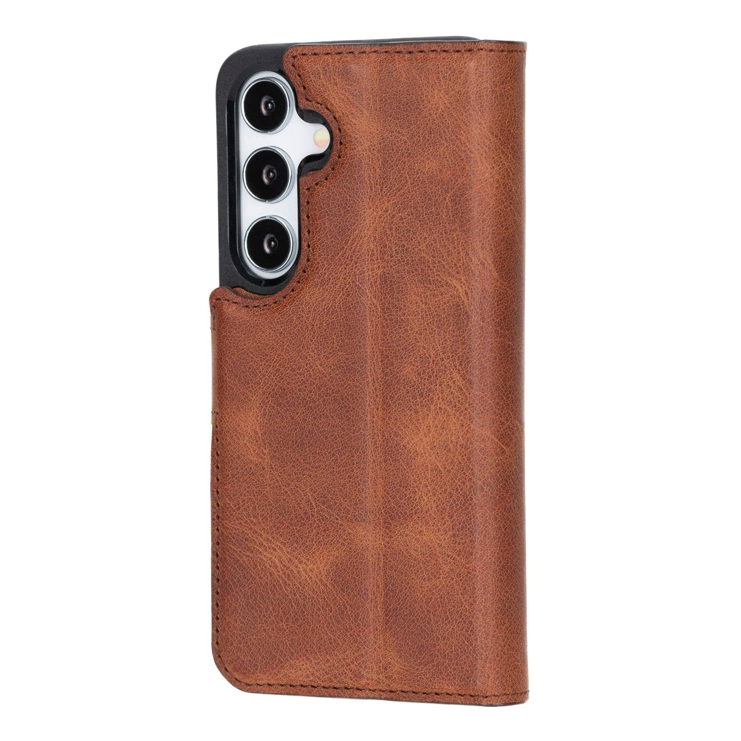 Smart 2-1 design allows you to use detachable Snap-On case independently. Wallet case provides easily accessible 3 card slots, 1 window slot for photo ID, and 1 posterior cash pocket. Strong magnetic detachable design of this Samsung Galaxy S25 leather case offers you more flexibility.