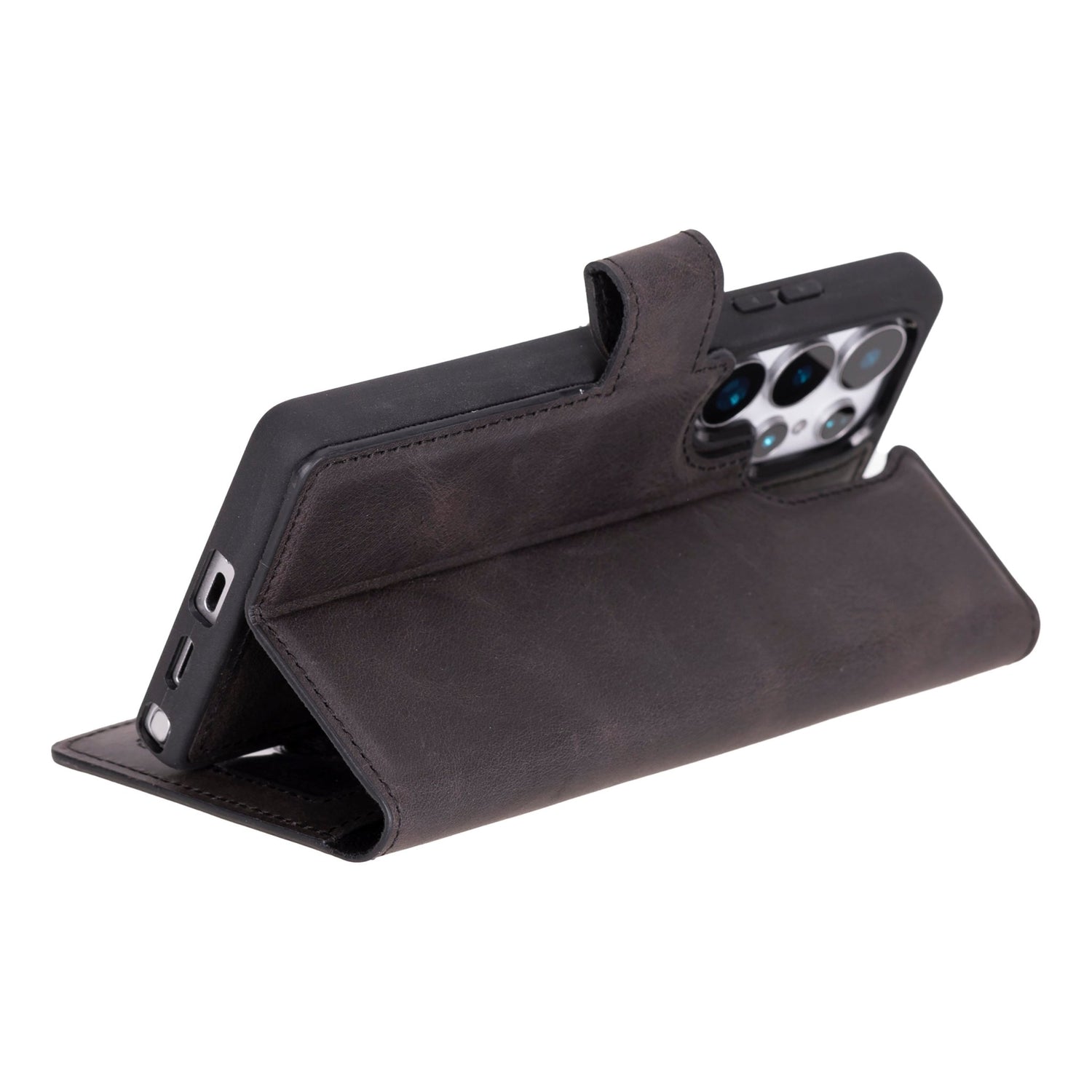 Smart 2-1 design allows you to use detachable Snap-On case independently. Wallet case provides easily accessible 3 card slots, 1 window slot for photo ID, and 1 posterior cash pocket. Strong magnetic detachable design of this Samsung Galaxy S24 Ultra leather case offers you more flexibility.