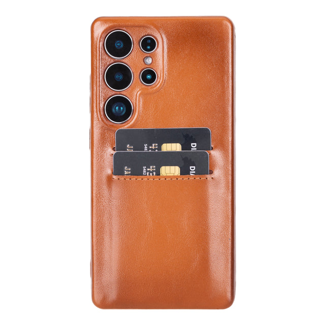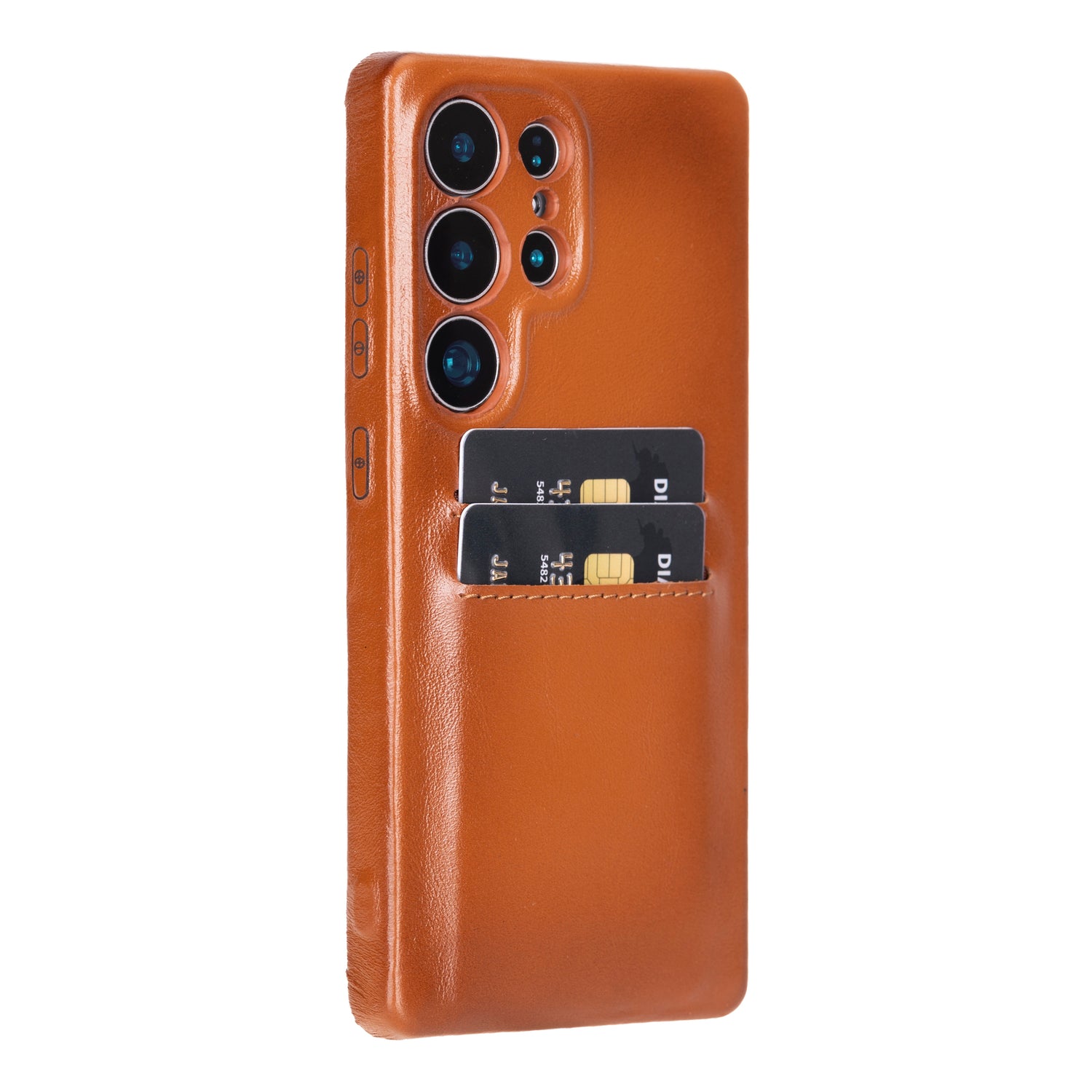Samsung Galaxy S25 Ultra Snap-on Full Cover Leather Case with Credit Card Slots - Russet is backordered and will ship as soon as it is back in stock.
