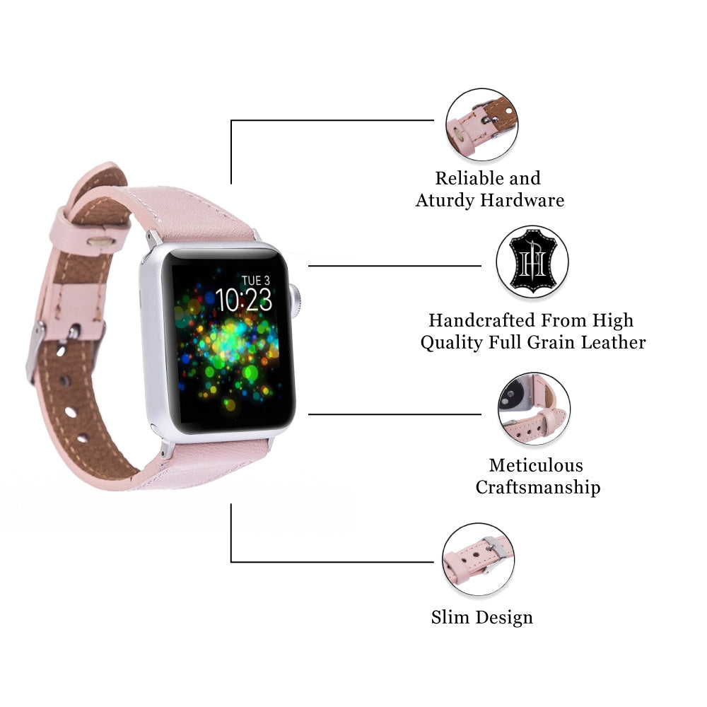 This leather Slim Apple watch band is crafted uniquely for women with a stylish and slim-fit. This Apple watch narrow band boasts stitches with premium quality thread, also for making it durable.