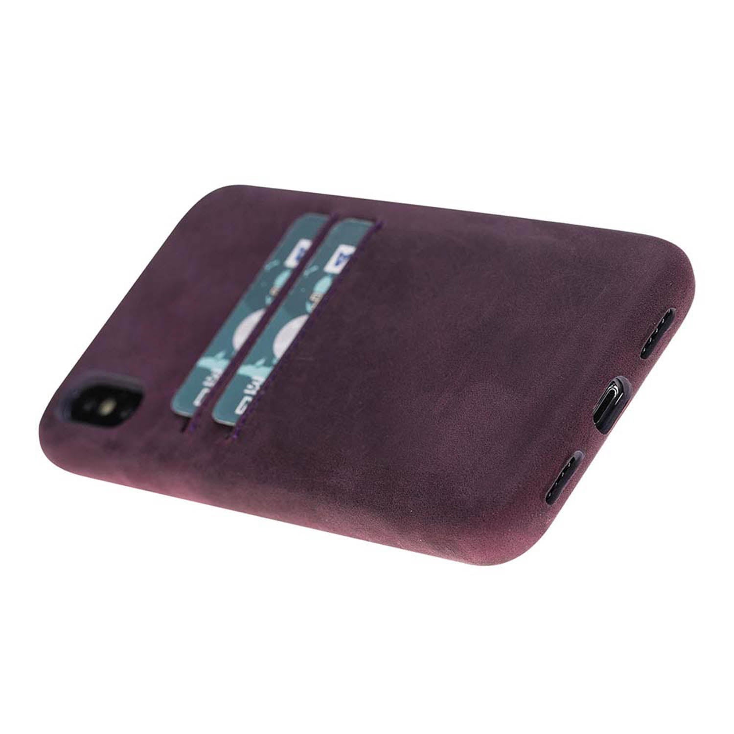 iPhone X / XS Snap-on Full Cover Leather Case with Credit Card Slots - Purple is backordered and will ship as soon as it is back in stock.