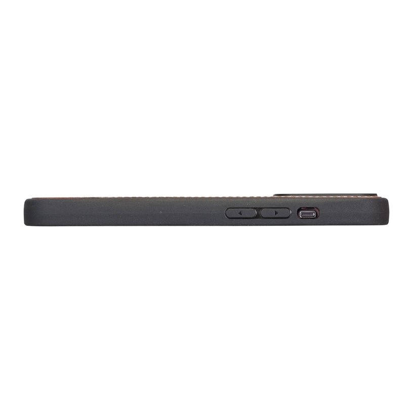 This leather phone case features durable TPE side bumpers to shield your iPhone 13 Pro Max from drops and bumps. Moreover, the side buttons are also covered with the side bumper to enable comfy reach. This part is tightly sewn to the leather back with strong stitches to ensure sturdy craftsmanship.
