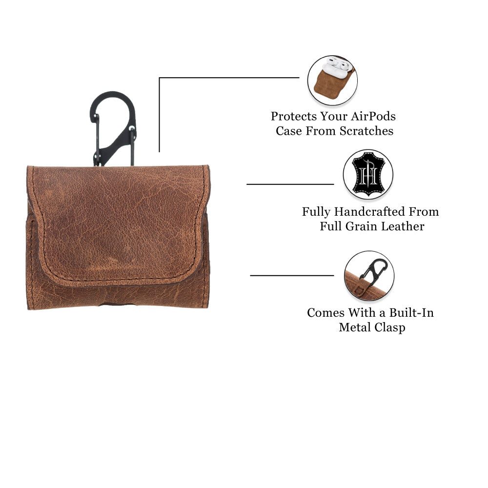 Beautifully designed, neatly handmade, naturally elegant. Made by experienced artisans using fine quality leather. Keeps your AirPods safe under a magnetic closure flap lid.